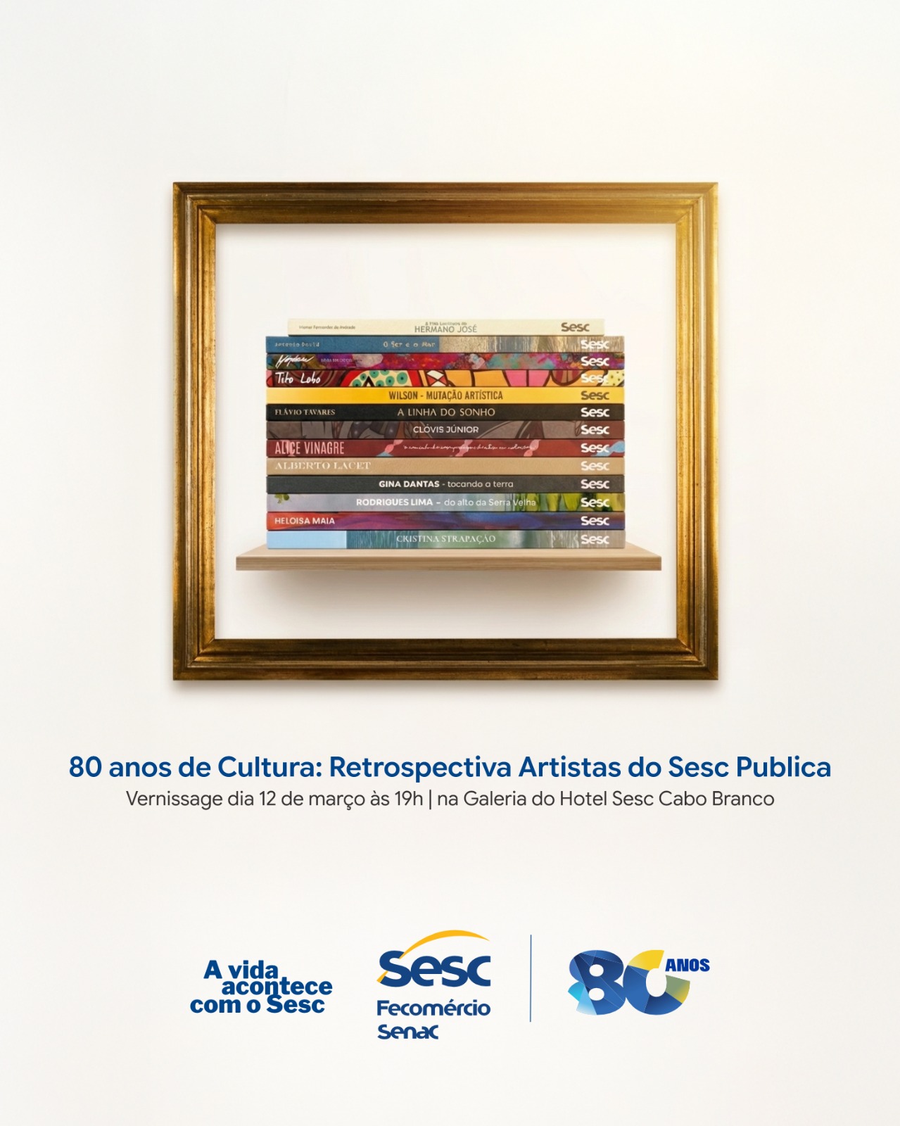 O Sesc Paraíba celebra seus 80 anos com a abertura da exposição Retrospectiva Sesc Publica: 13 Artistas, 13 Livros e 13 Obras, que reúne, em uma mostra inédita, os treze artistas paraibanos contemplados pelo projeto Sesc Publica ao longo dos últimos anos. O vernissage acontece no dia 12 de março, às 19h, na Galeria de Exposições do Sesc Cabo Branco, em João Pessoa, com entrada gratuita e visitação aberta ao público.