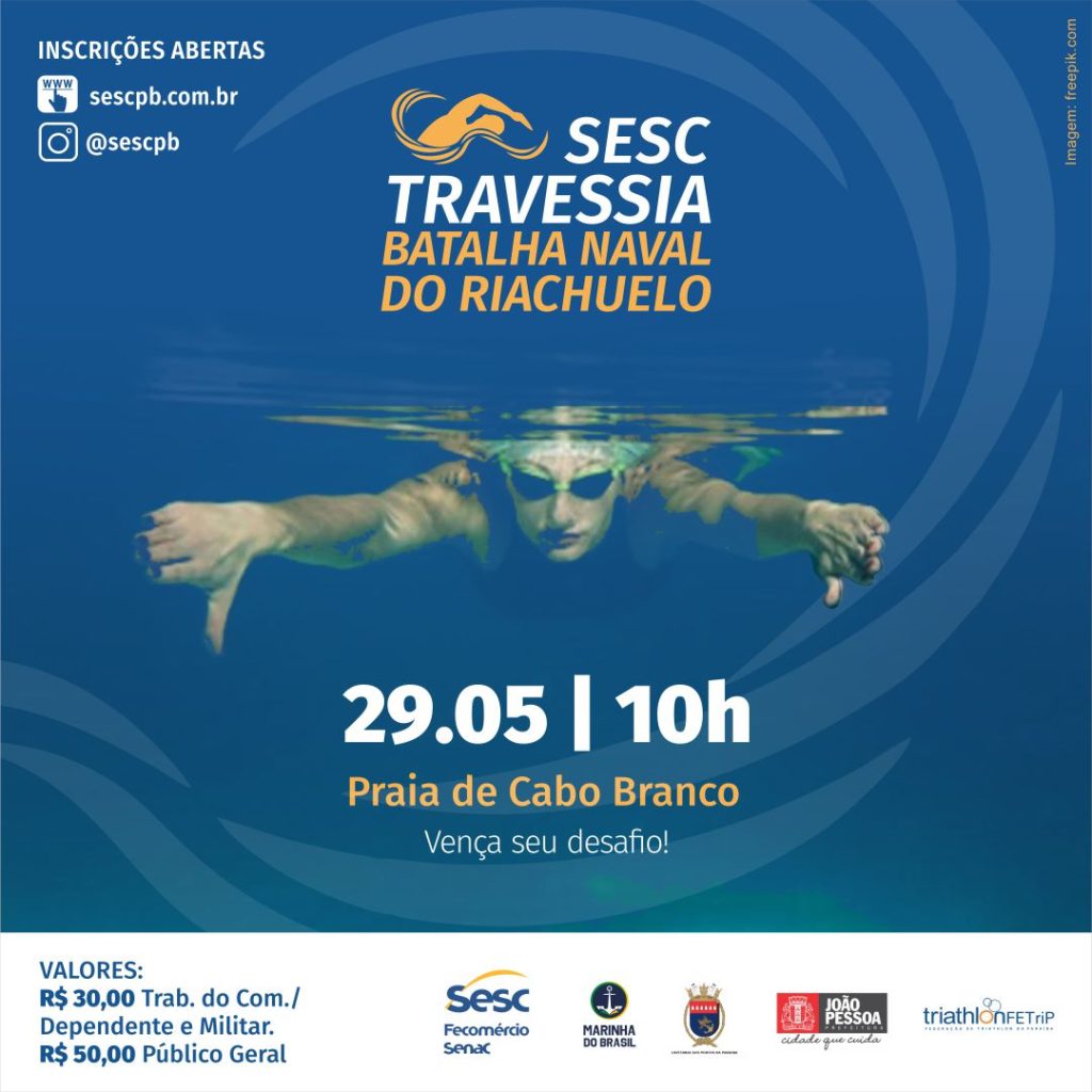 Ainda na área esportiva, juntamente com a Capitania dos Portos da Paraíba, o Sesc realiza a Travessia Batalha Naval do Riachuelo, com apoio da Federação de Triathlon da Paraíba. A prova será realizada com um percurso de 1 e 2 quilômetros nas águas da Praia do Cabo Branco e imediações. A finalidade do evento é fomentar o esporte e treinar atletas amadores que nadam e queiram vivenciar a prática da natação em águas abertas, desenvolver ainda mais a modalidade esportiva no estado e promover a prática da atividade física como benefício da saúde e qualidade de vida.