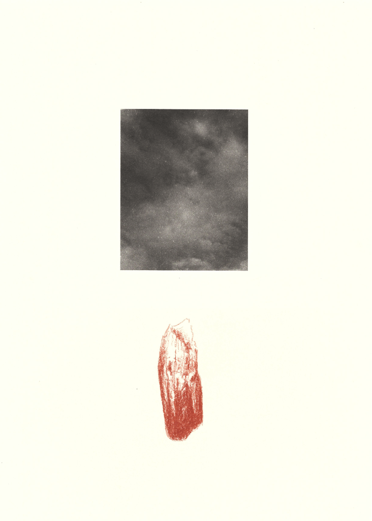 A professora Natalia Brizuela afirma que a fotografia é a arte que permitiu que a literatura saísse de si mesma. Está na fronteira porosa entre a verdade e a ficção. Lucas Alves dialoga com a ciência para grafar uma paisagem que, entre sangue e linhas, busca acompanhar o cotidiano de uma nuvem. O artista escreve fotograficamente. Enquadra imagens no papel. As imagens caminham.