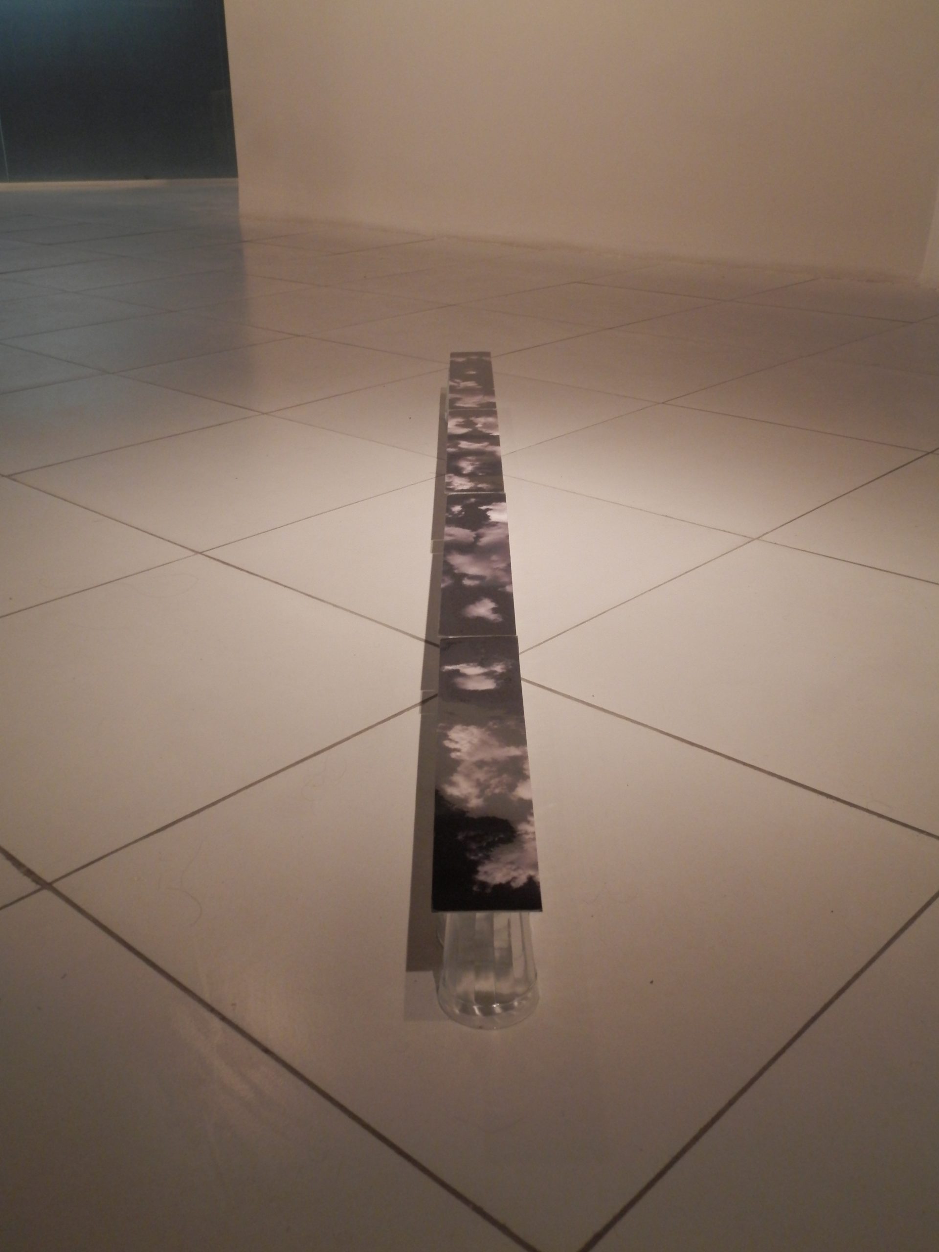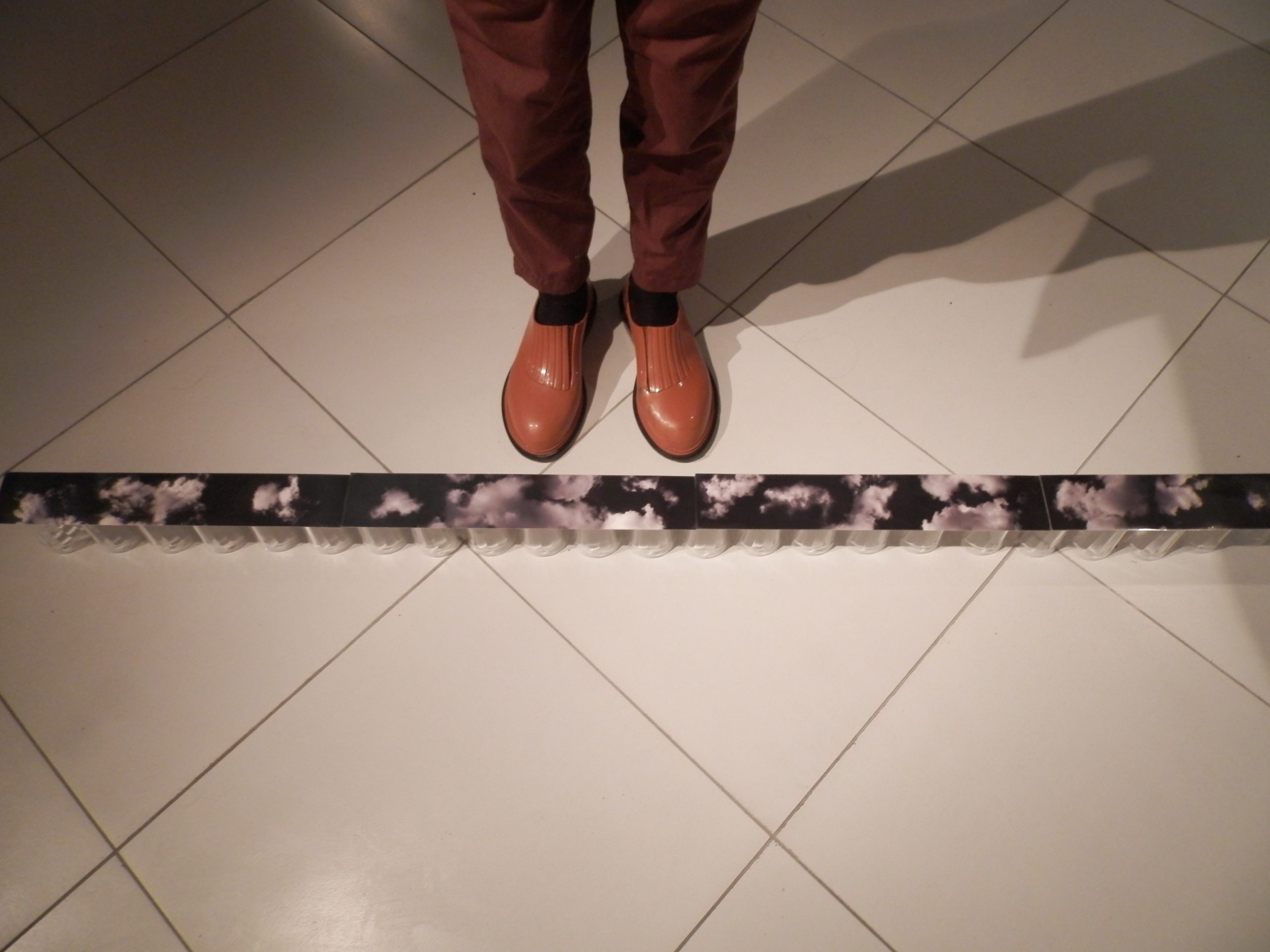 Um sonho que nos percorre desde a infância é o de tocar as nuvens. Torná-las próximas. Nuvens caminham em uma espécie de procissão. Sempre numa mesma direção. Se passamos a vida toda direcionando o nosso olhar para cima, a fim de contemplar o céu, hoje nos inclinamos, porque o céu, em um ato de teimosia, decidiu fazer morada no chão, fez do piso da galeria a sua cama. Na paisagem que caminhamos ao lado das nuvens, pisar nas nuvens não é prudente, pois corta a nossa carne.
