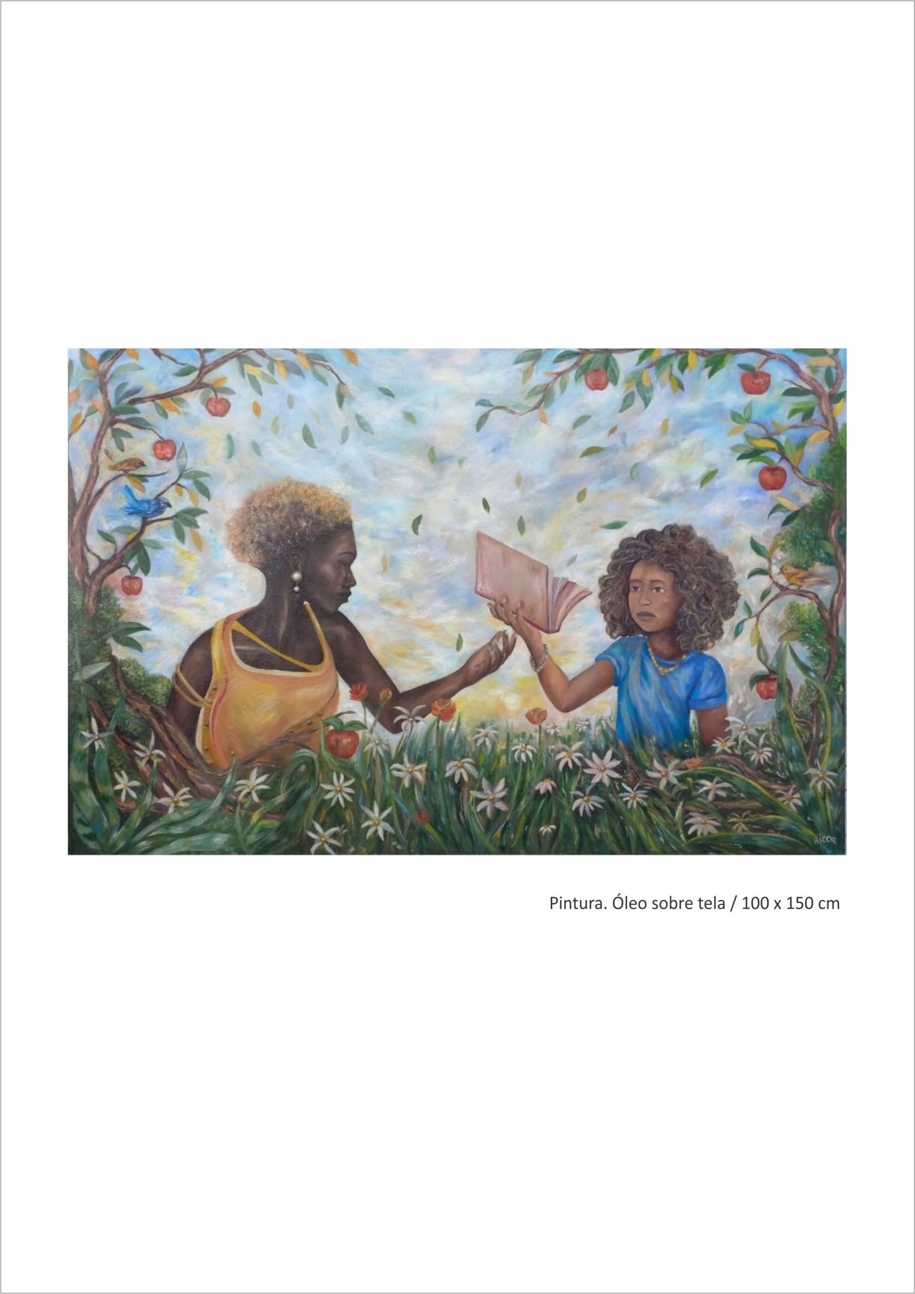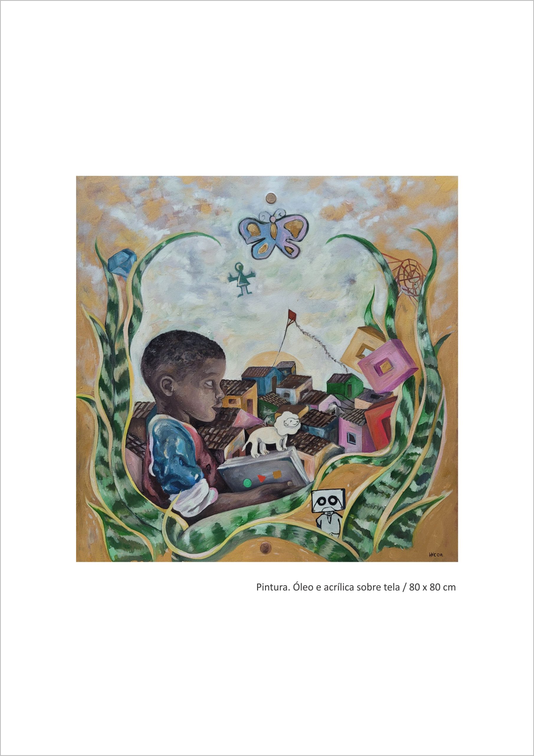 Felipe Batista da Silva, HICOR, transpira em sua pintura os seus sonhos e as suas memórias e de tantes outres jovens pretes periféricos: viver de sua arte, de suas ideias. Assim, através de sua maior manifestação cultural, surge a manifestação rítmica de seu devir, transcendendo a marginalidade e a dor. Quando pinta, HICOR rima com as cores como quem rima com o Rap, contando a sua realidade, o seu amanhecer, o seu corre, a sua quebrada: “olha só aquele clube, que da hora, olha o pretinho vendo tudo do lado de fora” (Racionais Mcs). Do grafismo impresso através de suas pinceladas marcantes, carregadas e suaves, surge sua identidade, sua pretitude, o seu caminhar na arte, como “um homem na estrada que recomeça a sua vida, sua finalidade, a sua liberdade”.
